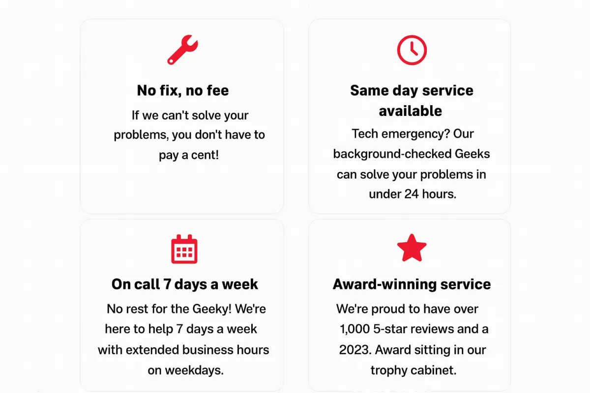 We believe no tech problem is too big or too small. If you’re facing tech challenges, it’s time to bring in the experts. Don’t let tech issues slow you down—book your Geek today and experience hassle-free solutions!